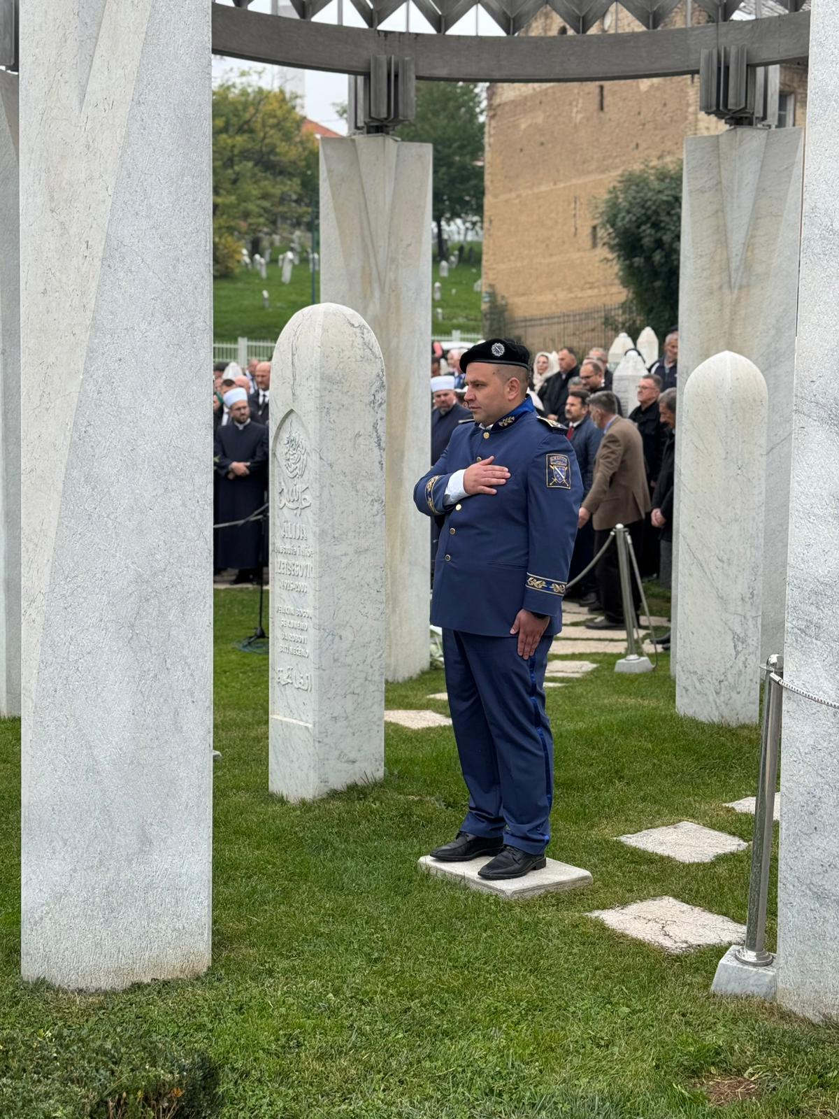Polaganjem cvijeća odata je počast državniku koji je u najtežim vremenima za Bosnu i Hercegovinu pokazao viziju, hrabrost i predanost izgradnji nezavisne, suverene i demokratske države.