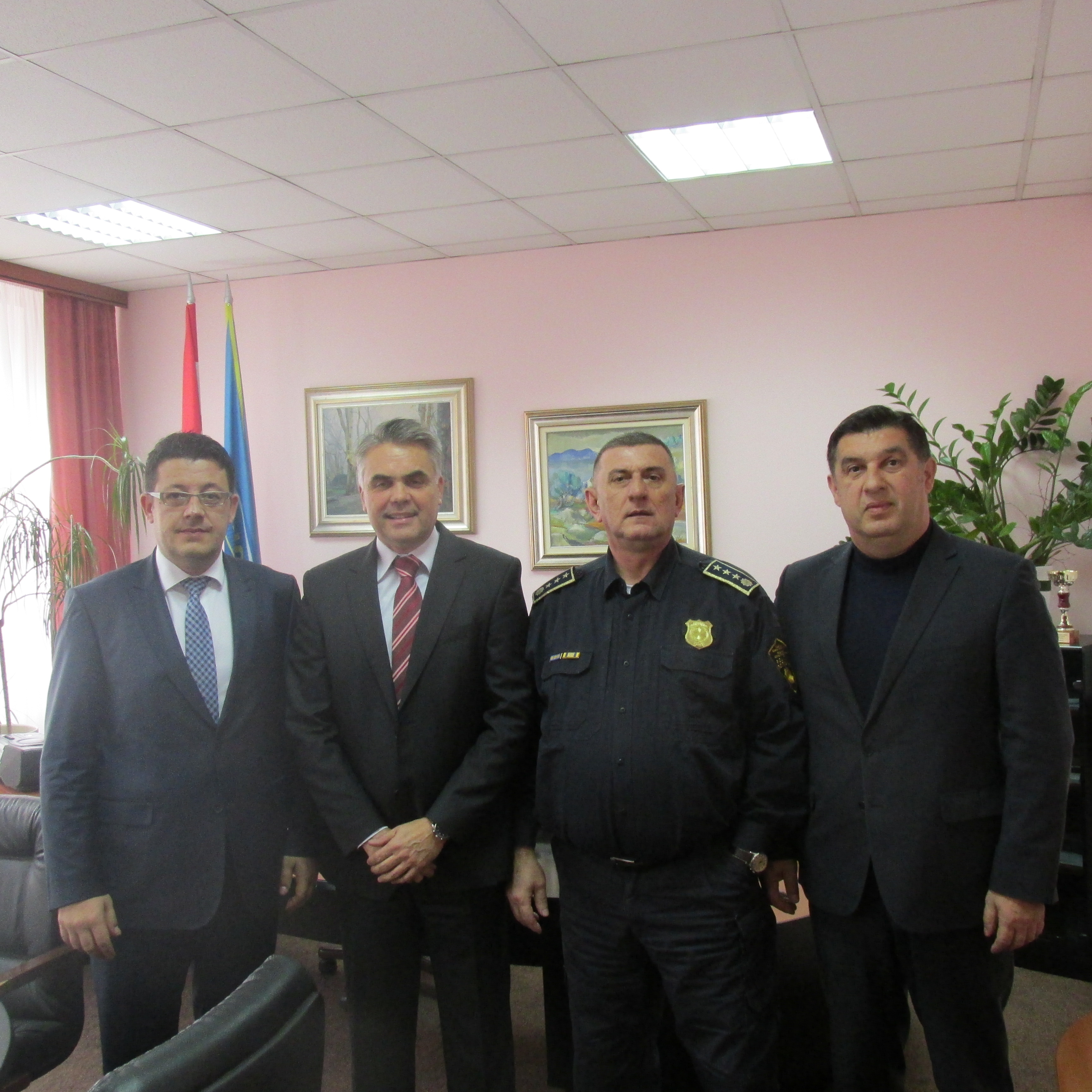 Mostar, 16. februar/veljača, 2016. - Federalni ministar unutrašnjih poslova Aljoša Čampara i direktor Federalne uprave policije Dragan Lukač tokom redovnog obilaska kantonalnih ministarstava unutrašnjih poslova posjetili su MUP Kantona Sarajevo, gdje su ih primili ministar Ismir Jusko i policijski komesar Vahid ćosić i MUP Hercegovačko-neretvanskog kantona, gdje su ih primili ministar Slađan Bevanda i policijski komesar Ilija Lasić.