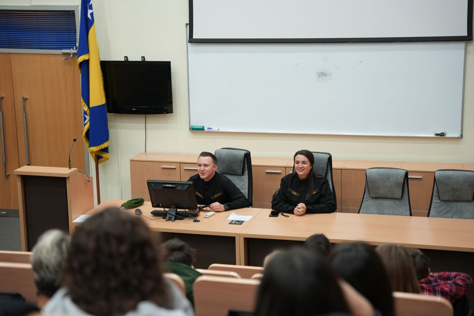 Učenici su na Policijskoj akademiji FMUP-a imali priliku pogledati kratki dokumentarni film u kojem je prezentirano kako izgleda jedan dan na Policijskoj akademiji FMUP-a za kadete osnovne policijske obuke.