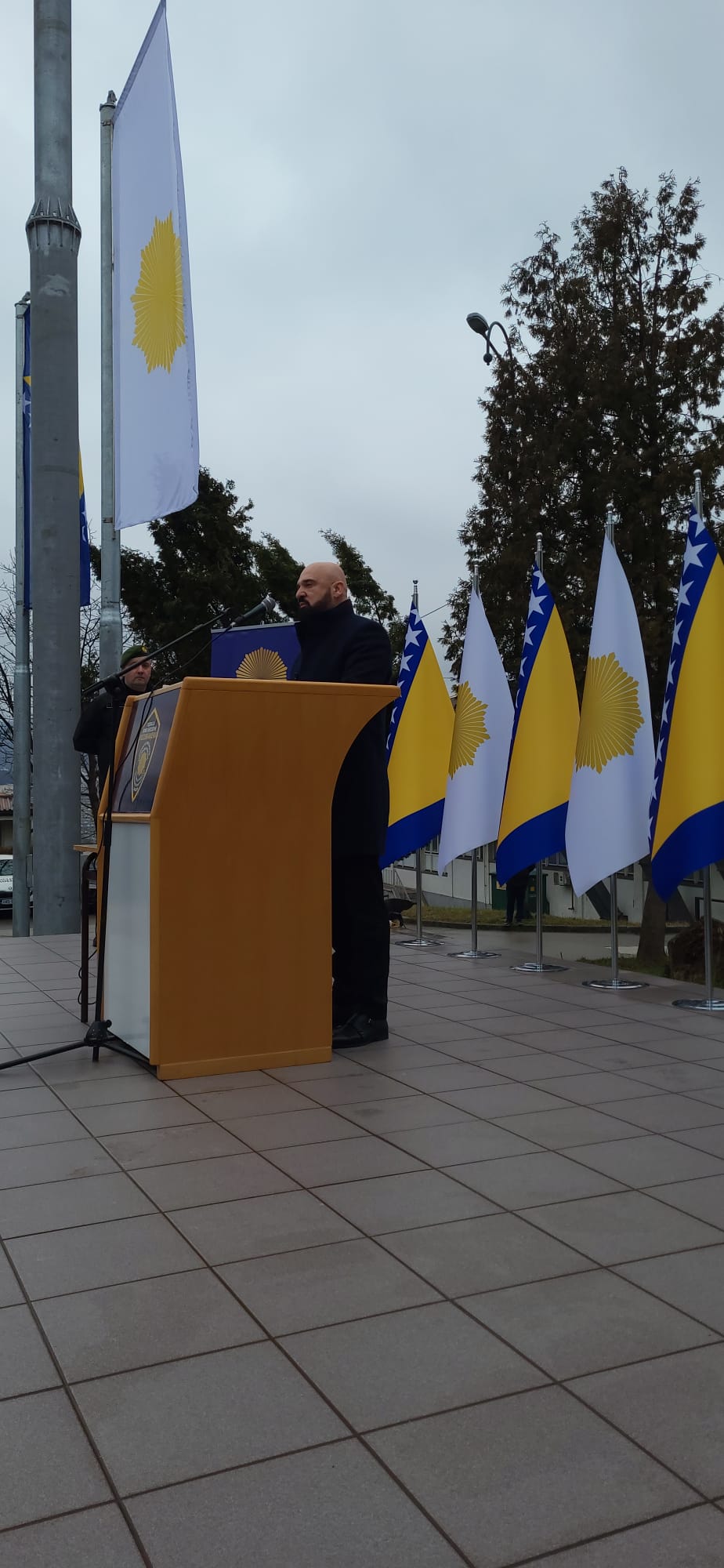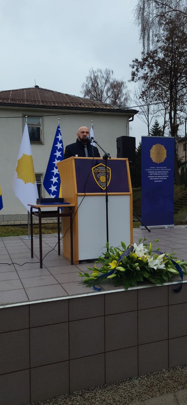 „Policijska akademija FMUP-a je mjesto oslobođeno podjela. Mi se jedino dijelimo po vodovima i klasama. Posebno mi je zadovoljstvo što danas, u povodu obilježavanja 1. marta, podižemo zastavu države Bosne i Hercegovine na novoizgrađenom jarbolu, a koji je zasigurno jedan od najvećih na području Sarajeva. Na ovom poligonu, pod zastavom Bosne i Hercegovine, nastavit će se intonirati državna himna i postrojavati kadeti koji će našu Bosnu i Hercegovinu činiti sigurnijom zemljom“, kazao je direktor Mušinović.